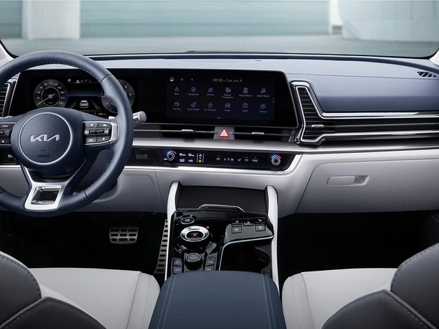 The X-Line AWD trim level for the Kia Sportage has a center locking differential and 19-inch wheels. There are also roof rails, and the touchscreen is upgraded to 12.3 inches.