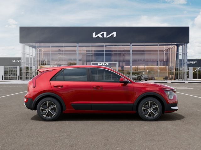 4-Wheel Disc Brakes, 6 Speakers, ABS brakes, Air Conditioning, Alloy wheels, AM/FM radio, Auto High-beam Headlights, Automatic temperature control, Brake assist, Bumpers: body-color, Cloth-Trimmed Seats, Delay-off headlights, Driver door bin, Driver vanity mirror, Dual front impact airbags, Dual front side impact airbags, Electronic Stability Control, Exterior Parking Camera Rear, Four wheel independent suspension, Front anti-roll bar, Front Bucket Seats, Front Center Armrest, Front dual zone A/C, Front reading lights, Fully automatic headlights, Heated door mirrors, Illuminated entry, Knee airbag, Low tire pressure warning, Occupant sensing airbag, Outside temperature display, Overhead airbag, Overhead console, Panic alarm, Passenger door bin, Passenger vanity mirror, Power door mirrors, Power steering, Power windows, Radio: AM/FM/HD, Rear anti-roll bar, Rear window defroster, Rear window wiper, Remote keyless entry, Security system, Speed control, Speed-sensing steering, Split folding rear seat, Spoiler, Steering wheel mounted audio controls, Telescoping steering wheel, Tilt steering wheel, Traction control, Trip computer, Variably intermittent wipers, Wheels: 6.5J x 16" Aero Alloy. Red 2026 Kia Niro LX FWD 6-Speed Dual Clutch 1.6L 4-Cylinder DGI DOHC
