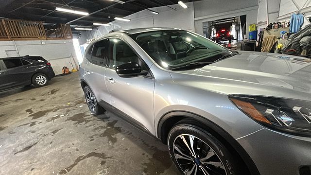 Silver Metallic 2022 Ford Escape Hybrid SE AWD eCVT 2.5L iVCT 2.5L iVCT, 2.91 Axle Ratio, 4-Wheel Disc Brakes, 4G LTE Wi-Fi Hotspot Removal, 6 Speakers, 8-Way Power Driver Seat, ABS brakes, Air Conditioning, Alloy wheels, AM/FM radio: SiriusXM, AM/FM Stereo, Auto High-beam Headlights, Automatic temperature control, Black Front & Rear Bumpers, Black Upper Window Molding w/Black Beltline Molding, Brake assist, Bumpers: body-color, Cargo Mat, Compass, Delay-off headlights, Driver door bin, Driver vanity mirror, Dual front impact airbags, Dual front side impact airbags, Dual-Zone Electronic Automatic Temperature Control, Electronic Fuel Door Release, Electronic Stability Control, Emergency communication system: SYNC 3 911 Assist, Equipment Group 201A, Exterior Parking Camera Rear, Ford Co-Pilot360 Assist+, FordPass Connect, Four wheel independent suspension, Front & Rear Floor Liners w/Carpet Mats, Front anti-roll bar, Front Bucket Seats, Front Center Armrest, Front dual zone A/C, Front License Plate Bracket, Front reading lights, Fully automatic headlights, Gloss Black 5-Bar Upper Grille w/Chrome Surround, High Gloss Black Mirror Skull Caps, Illuminated entry, Instrument Panel w/6.5" Digital Screen, Intelligent Adaptive Cruise Control w/Stop-and-Go, Knee airbag, Low tire pressure warning, Neutral Towing Capability, Occupant sensing airbag, Outside temperature display, Overhead airbag, Overhead console, Panic alarm, Passenger door bin, Passenger vanity mirror, Pedestrian Alert Sounder, Power door mirrors, Power steering, Power windows, Radio data system, Rear anti-roll bar, Rear reading lights, Rear window defroster, Rear window wiper, Remote keyless entry, SE Sport Appearance Package, Speed control, Speed Sign Recognition, Speed-sensing steering, Speed-Sensitive Wipers, Split folding rear seat, Spoiler, Steering wheel mounted audio controls, SYNC 3 Communications & Entertainment System, Telescoping steering wheel, Tilt steering wheel, Traction control, Trip computer, Unique Cloth Front Bucket Seats, Variably intermittent wipers, Voice-Activated Touchscreen Navigation System, Wheels: 17" Shadow Silver-Painted Aluminum, Wheels: 19" Machined-Face Ebony-Painted Aluminum, 2.5L iVCT.