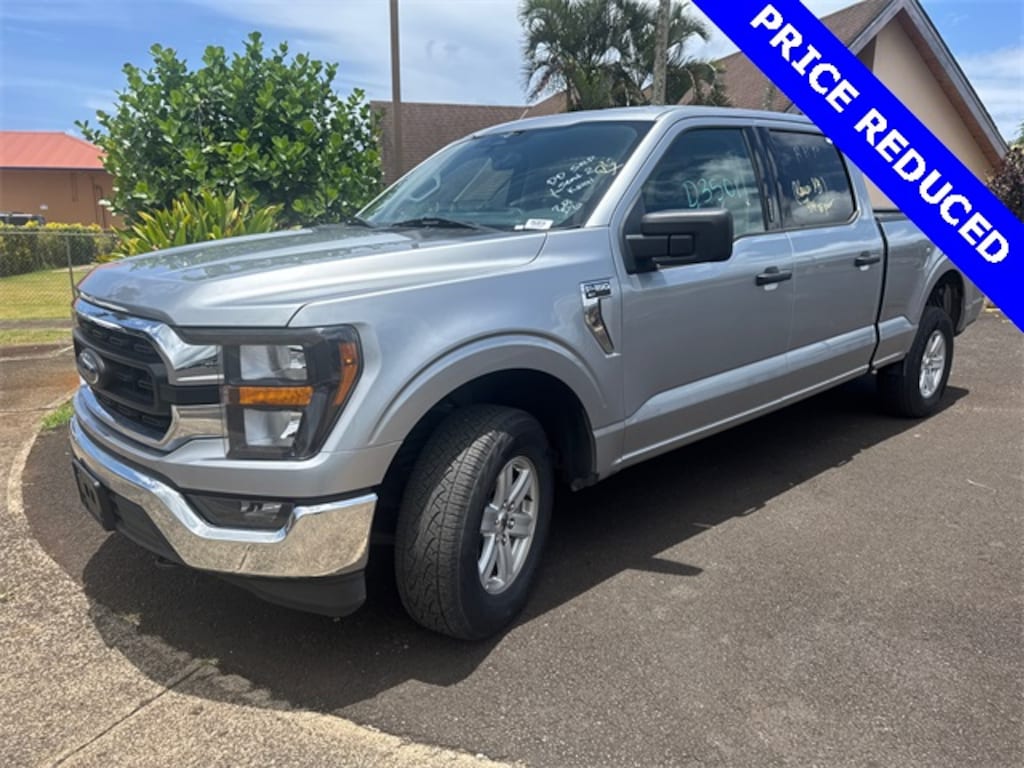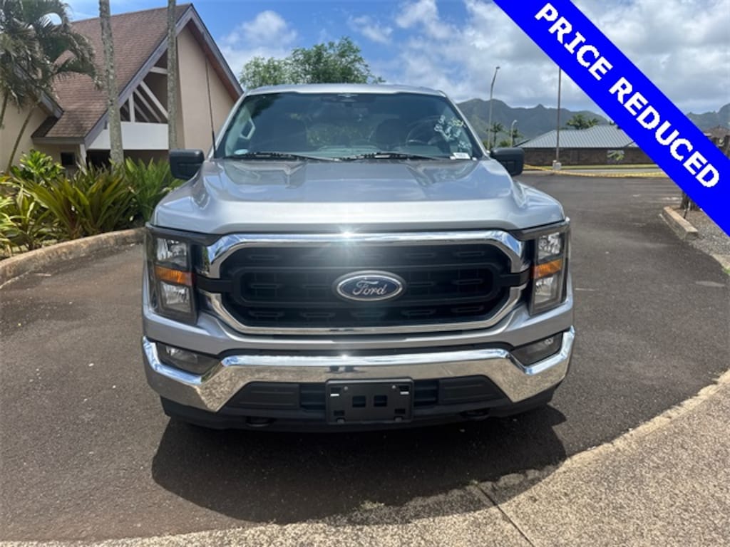 Silver Metallic 2023 Ford F-150 XLT 4WD 10-Speed Automatic 3.31 Axle Ratio, 4-Wheel Disc Brakes, 6 Speakers, ABS brakes, Air Conditioning, Alloy wheels, AM/FM radio, Auto High-beam Headlights, Auto Start-Stop Removal (DISC), Brake assist, Bumpers: chrome, Cloth 40/20/40 Front Seat, Compass, Delay-off headlights, Driver door bin, Driver vanity mirror, Dual front impact airbags, Dual front side impact airbags, Electronic Stability Control, Emergency communication system: SYNC 4 911 Assist, Equipment Group 301A Mid, Exterior Parking Camera Rear, Front anti-roll bar, Front Center Armrest w/Storage, Front fog lights, Front License Plate Bracket, Front reading lights, Front wheel independent suspension, Fully automatic headlights, Heated door mirrors, Illuminated entry, Low tire pressure warning, Occupant sensing airbag, Outside temperature display, Overhead airbag, Overhead console, Panic alarm, Passenger door bin, Passenger vanity mirror, Power door mirrors, Power steering, Power windows, Radio data system, Radio: AM/FM Stereo w/6 Speakers, Rear reading lights, Rear step bumper, Rear window defroster, Remote keyless entry, Security system, Speed control, Speed-sensing steering, Split folding rear seat, Steering wheel mounted audio controls, SYNC 4, Tachometer, Telescoping steering wheel, Tilt steering wheel, Traction control, Trip computer, Variably intermittent wipers, Voltmeter, Wheels: 17" Silver Painted Aluminum. 5.0L V8