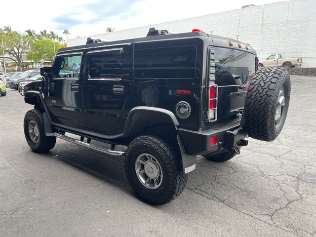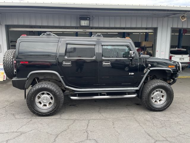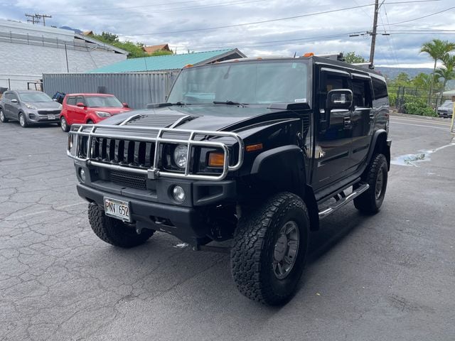 Black 2007 Hummer H2 4WD 4-Speed Automatic HD with Overdrive Vortec 6.0L V8 SFI 17" x 8.5" Aluminum Wheels, 17" x 8.5" Chrome Aluminum Wheels, 4-Wheel Disc Brakes, 4.10 Rear Axle Ratio, 9 Speakers, ABS brakes, Adventure Kit, Air Conditioning, Alloy wheels, AM/FM radio: XM, AM/FM Stereo w/CD/Cassette/XM Satellite, AM/FM stereo, CD player, with DVD Navigation and XM Satellite Radio, Audio memory, Auto-dimming door mirrors, Auto-dimming Rear-View mirror, Automatic temperature control, Brushed Aluminum Double Crossbar Roof Rack, Cassette, CD player, Chrome Aluminum Fuel Filler Door, Chrome Aluminum Hood Handles (Set of 2), Chrome Aluminum Hood Latches (Set of 2), Chrome Appearance Package, Chrome Brush Guard, Chrome Plated Assist Steps (Set of 2), Chrome Plated Taillamp Protection (Set of 2), Compass, Driver door bin, Driver vanity mirror, Driver's Seat Mounted Armrest, Dual front impact airbags, Emergency communication system: OnStar, Front & Rear Removable Black Carpeted Floor Mats, Front anti-roll bar, Front Bucket Seats, Front dual zone A/C, Front License Plate Bracket, Front reading lights, Front wheel independent suspension, Fully automatic headlights, Garage door transmitter, Gloss Black Grille w/HUMMER Letter Emblems, Heated door mirrors, Heated front seats, Heated rear seats, Illuminated entry, Leather Seating Surfaces, Leather Shift Knob, Leather steering wheel, Luxury Series Package 1SC, Memory seat, Mini Overhead Console, Occupant sensing airbag, Outside temperature display, Overhead console, Panic alarm, Passenger cancellable airbag, Passenger door bin, Passenger seat mounted armrest, Passenger vanity mirror, Power door mirrors, Power driver seat, Power passenger seat, Power steering, Power windows, Radio data system, Rear air conditioning, Rear anti-roll bar, Rear audio controls, Rear reading lights, Rear seat center armrest, Rear Seat Entertainment System, Rear window defroster, Rear window wiper, Rear-View Camera System, Rear Vision System, Remote keyless entry, Roof rack: rails only, Security system, Single Passenger 3rd Row Rear Folding Seat, Speed control, Speed-sensing steering, Split folding rear seat, Standard Ride Suspension Package, Steering wheel mounted audio controls, Tachometer, Tilt steering wheel, Tilt-Sliding Power Sunroof, Traction control, Trip computer, Variably intermittent wipers, Voltmeter, Weather band radio, XM Satellite Radio.