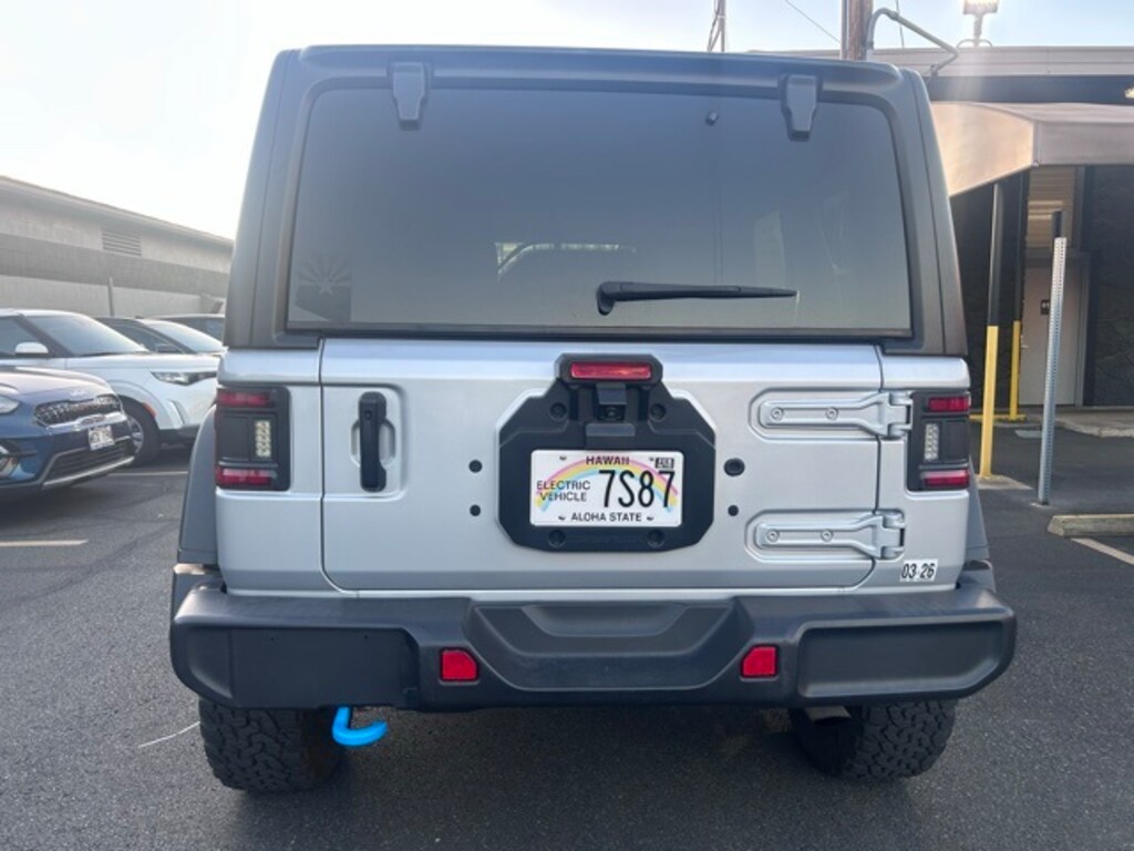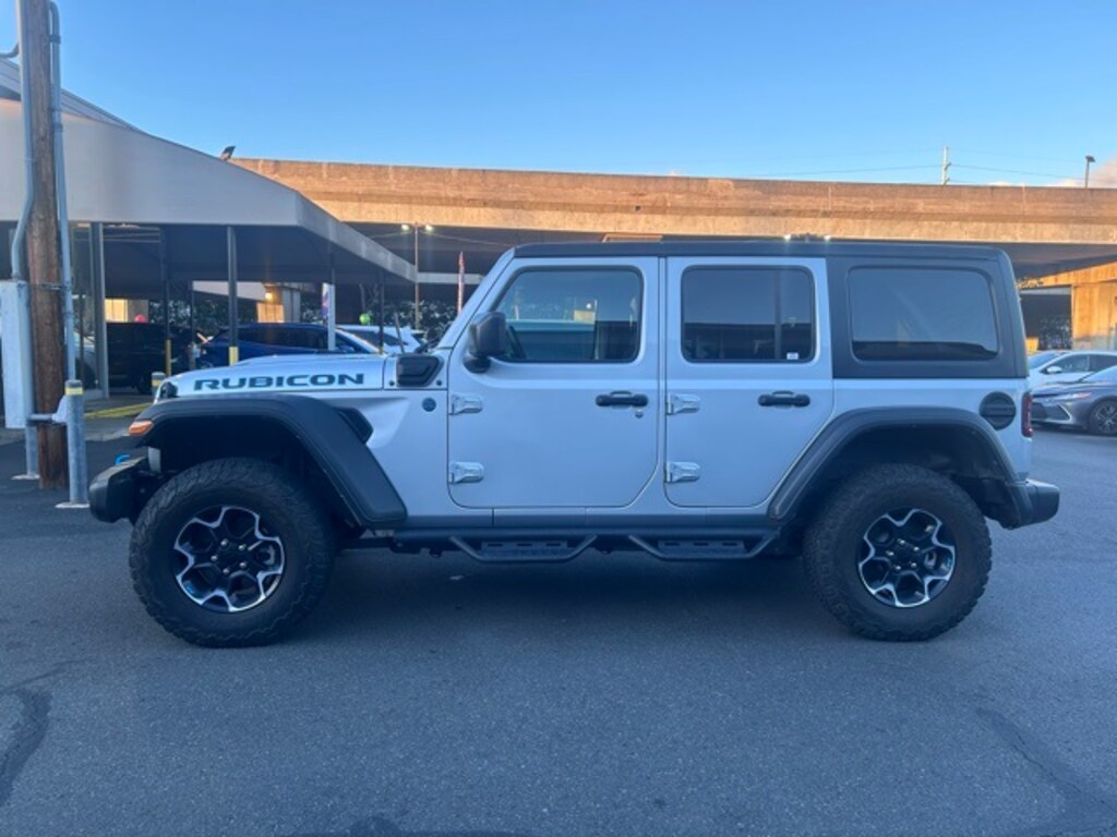 Silver Zynith Clearcoat 2023 Jeep Wrangler Rubicon 4xe 4WD 8-Speed Automatic 2.0L I4 DOHC 2.0L I4 DOHC, 4-Wheel Disc Brakes, 4.10 Rear Axle Ratio, 9 Speakers, ABS brakes, Air Conditioning, Alloy wheels, AM/FM radio: SiriusXM, Apple CarPlay/Android Auto, Auto-dimming Rear-View mirror, Automatic temperature control, Brake assist, Compass, Delay-off headlights, Driver door bin, Driver vanity mirror, Dual front impact airbags, Dual front side impact airbags, Electronic Stability Control, Emergency communication system: SiriusXM Guardian, Front anti-roll bar, Front Bucket Seats, Front Center Armrest w/Storage, Front dual zone A/C, Front fog lights, Front License Plate Bracket, Front reading lights, Fully automatic headlights, Garage door transmitter, Heated door mirrors, Illuminated entry, Integrated roll-over protection, Low tire pressure warning, MOPAR All-Weather Floor Mats, Navigation System, Occupant sensing airbag, Outside temperature display, Panic alarm, ParkView Rear Back-Up Camera, Passenger door bin, Passenger vanity mirror, Performance Suspension, Power door mirrors, Power steering, Power windows, Premium Cloth Low-Back Bucket Seats, Quick Order Package 29V Rubicon, Radio data system, Radio: Uconnect 4C Nav w/8.4" Display, Rear anti-roll bar, Rear reading lights, Remote keyless entry, Security system, Speed control, Split folding rear seat, Steering wheel mounted audio controls, Tachometer, Telescoping steering wheel, Tilt steering wheel, Traction control, Trip computer, Variably intermittent wipers, Voltmeter, Wheels: 17" x 7.5" Machined w/Black Pockets, 2.0L I4 DOHC.