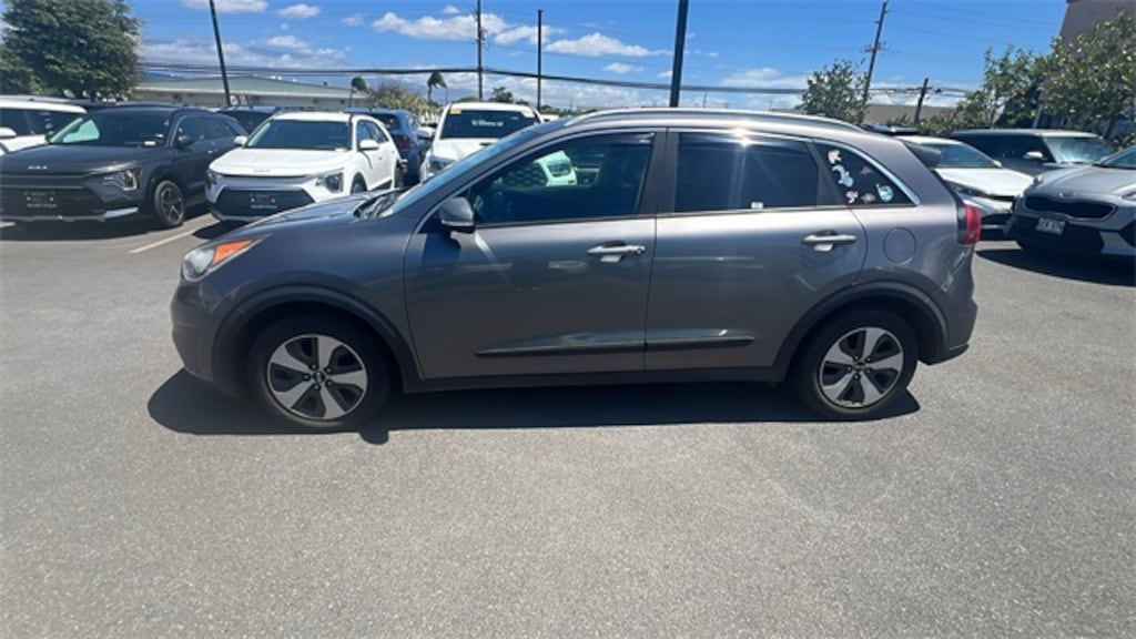 Metal Stream 2017 Kia Niro EX FWD Dual Clutch 6-Speed Automatic 1.6L I4 Bluetooth, Backup Camera, Traditional Certified, 1.6L I4, 3.23 Axle Ratio, 4-Wheel Disc Brakes, 6 Speakers, ABS brakes, Air Conditioning, Alloy wheels, AM/FM radio: SiriusXM, Apple CarPlay & Android Auto, Automatic temperature control, Bodyside moldings, Brake assist, Bumper Applique, Bumpers: body-color, Cargo Net, Carpet Floor Mats, Cloth & Leather-Trimmed Seats, Delay-off headlights, Driver door bin, Driver vanity mirror, Dual front impact airbags, Dual front side impact airbags, Electronic Stability Control, Emergency communication system: UVO eServices 911 Connect, Exterior Parking Camera Rear, Four wheel independent suspension, Front anti-roll bar, Front Bucket Seats, Front Center Armrest, Front dual zone A/C, Front fog lights, Front reading lights, Fully automatic headlights, Heated door mirrors, Heated Front Bucket Seats, Heated front seats, Illuminated entry, Knee airbag, Leather Shift Knob, Low tire pressure warning, Occupant sensing airbag, Outside temperature display, Overhead airbag, Overhead console, Panic alarm, Passenger door bin, Passenger vanity mirror, Power door mirrors, Power steering, Power windows, Radio: AM/FM/MP3/SiriusXM Audio System, Rear anti-roll bar, Rear seat center armrest, Rear window defroster, Rear window wiper, Remote keyless entry, Roof rack: rails only, Security system, Speed control, Speed-sensing steering, Split folding rear seat, Spoiler, Steering wheel mounted audio controls, Telescoping steering wheel, Tilt steering wheel, Traction control, Trip computer, Turn signal indicator mirrors, Variably intermittent wipers, Wheels: 16" Alloy w/Full Covers, 1.6L I4, 3.23 Axle Ratio, 4-Wheel Disc Brakes, 6 Speakers, ABS brakes, Air Conditioning, Alloy wheels, AM/FM radio: SiriusXM, Apple CarPlay & Android Auto, Automatic temperature control, Bodyside moldings, Brake assist, Bumper Applique, Bumpers: body-color, Cargo Net, Carpet Floor Mats, Cloth & Leather-Trimmed Seats, Delay-off headlights, Driver door bin, Driver vanity mirror, Dual front impact airbags, Dual front side impact airbags, Electronic Stability Control, Emergency communication system: UVO eServices 911 Connect, Exterior Parking Camera Rear, Four wheel independent suspension, Front anti-roll bar, Front Bucket Seats, Front Center Armrest, Front dual zone A/C, Front fog lights, Front reading lights, Fully automatic headlights, Heated door mirrors, Heated Front Bucket Seats, Heated front seats, Illuminated entry, Knee airbag, Leather Shift Knob, Low tire pressure warning, Occupant sensing airbag, Outside temperature display, Overhead airbag, Overhead console, Panic alarm, Passenger door bin, Passenger vanity mirror, Power door mirrors, Power steering, Power windows, Radio: AM/FM/MP3/SiriusXM Audio System, Rear anti-roll bar, Rear seat center armrest, Rear window defroster, Rear window wiper, Remote keyless entry, Roof rack: rails only, Security system, Speed control, Speed-sensing steering, Split folding rear seat, Spoiler, Steering wheel mounted audio controls, Telescoping steering wheel, Tilt steering wheel, Traction control, Trip computer, Turn signal indicator mirrors, Variably intermittent wipers, Wheels: 16" Alloy w/Full Covers.