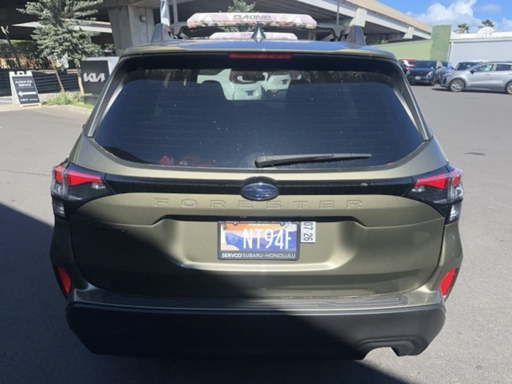 Autumn Green Metallic 2025 Subaru Forester Premium AWD Lineartronic CVT 2.5L 4-Cylinder DOHC 16V 4-Wheel Disc Brakes, 6 Speakers, ABS brakes, Air Conditioning, Alloy wheels, AM/FM radio: SiriusXM with 360L, Anti-whiplash front head restraints, Auto High-beam Headlights, Automatic Emergency Steering, Automatic temperature control, Blind-Spot Detection (BSD)/RCTA System, Brake assist, Bumpers: body-color, Driver door bin, Driver vanity mirror, Dual front impact airbags, Dual front side impact airbags, Electronic Stability Control, Emergency communication system: MySubaru Safety (3-year free trial), Exterior Parking Camera Rear, Four wheel independent suspension, Front anti-roll bar, Front Bucket Seats, Front Center Armrest, Front dual zone A/C, Front fog lights, Front reading lights, Fully automatic headlights, Heated door mirrors, Heated Front Bucket Seats, Heated front seats, Illuminated entry, Knee airbag, Leather steering wheel, Low tire pressure warning, Occupant sensing airbag, Outside temperature display, Overhead airbag, Overhead console, Panic alarm, Passenger door bin, Passenger vanity mirror, Power door mirrors, Power driver seat, Power moonroof: Panoramic, Power Rear Gate, Power Rear Gate & Blind Spot Detection w/RCTA, Power steering, Power windows, Premium Textured Cloth Upholstery, Radio data system, Radio: Subaru 11.6" Multimedia Plus System, Rear anti-roll bar, Rear seat center armrest, Rear window defroster, Rear window wiper, Remote keyless entry, Security system, Speed control, Speed-sensing steering, Split folding rear seat, Spoiler, Steering wheel mounted audio controls, Tachometer, Telescoping steering wheel, Tilt steering wheel, Traction control, Trip computer, Variably intermittent wipers, Wheels: 17" x 7.0 J Dark Metallic Aluminum-Alloy.