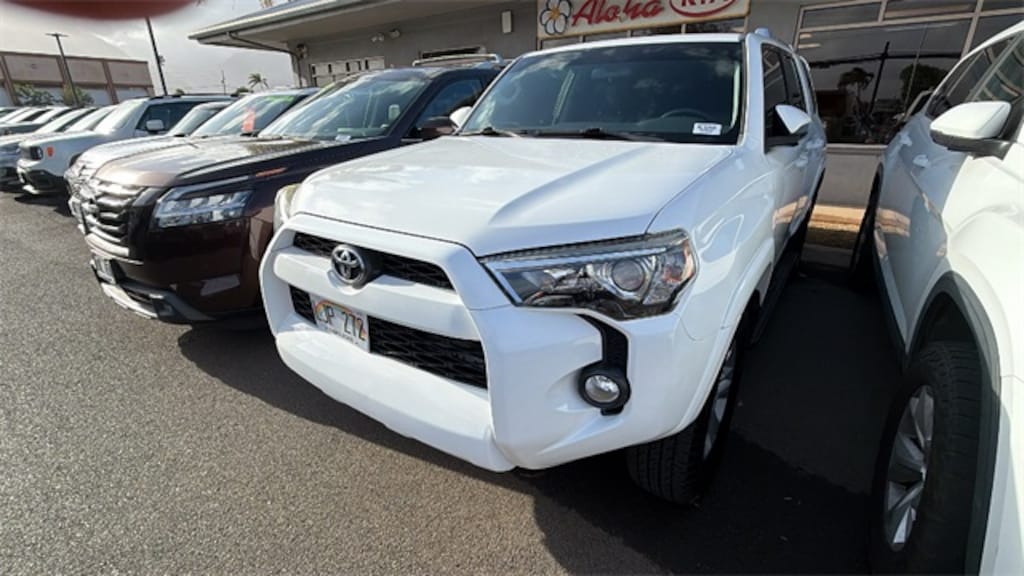 White 2018 Toyota 4Runner SR5 4WD 5-Speed Automatic with Overdrive 4.0L V6 SMPI DOHC 4WD, Black Graphite Cloth, 17" x 7.0" 6-Spoke Alloy Wheels, 3.727 Axle Ratio, 4-Wheel Disc Brakes, 8 Speakers, ABS brakes, Air Conditioning, Alloy wheels, AM/FM radio: SiriusXM, Anti-whiplash front head restraints, Brake assist, Bumpers: body-color, CD player, Driver door bin, Driver vanity mirror, Dual front impact airbags, Dual front side impact airbags, Electronic Stability Control, Emergency communication system: Safety Connect, Exterior Parking Camera Rear, Front anti-roll bar, Front Bucket Seats, Front Center Armrest, Front fog lights, Front reading lights, Front wheel independent suspension, Heated door mirrors, Illuminated entry, Knee airbag, Leather Shift Knob, Leather steering wheel, Low Fabric Seat Trim, Low tire pressure warning, Occupant sensing airbag, Outside temperature display, Overhead airbag, Overhead console, Panic alarm, Passenger door bin, Passenger vanity mirror, Power door mirrors, Power driver seat, Power steering, Power windows, Radio: Entune Audio Plus, Rear anti-roll bar, Rear seat center armrest, Rear window defroster, Rear window wiper, Remote keyless entry, Roof rack: rails only, Security system, Speed control, Speed-sensing steering, Split folding rear seat, Spoiler, Steering wheel mounted audio controls, Tachometer, Telescoping steering wheel, Tilt steering wheel, Traction control, Trip computer, Variably intermittent wipers.